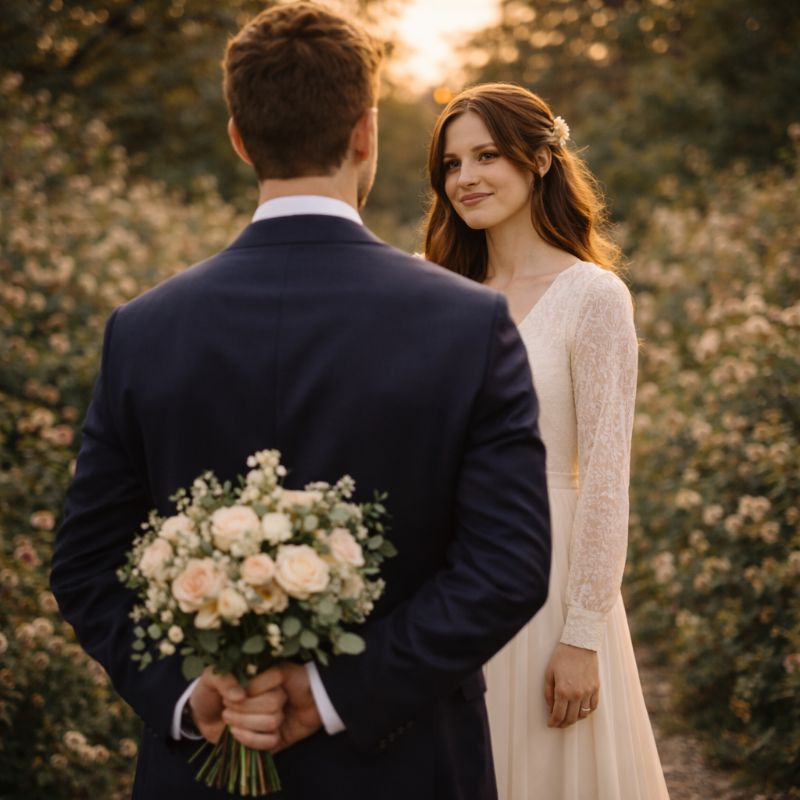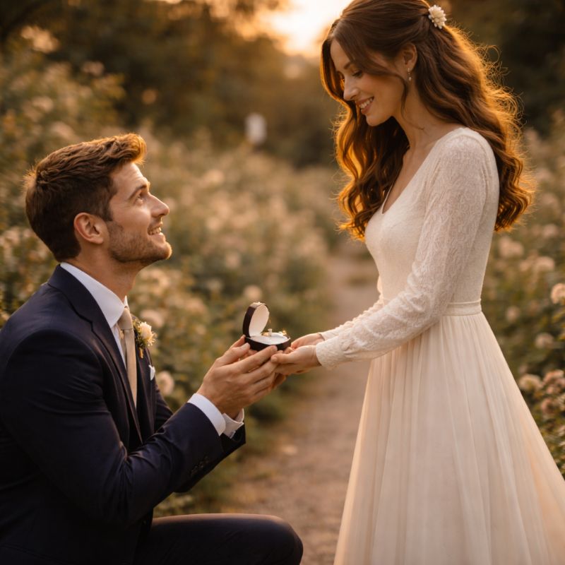Two years later, Lucas planned the perfect surprise. He took Emma back to that same coffee shop where they first met. After a nostalgic walk through their favorite spots, he got down on one knee in the park where they had their first picnic. With the sunset painting the sky in shades of pink and gold, Emma said yes through happy tears.